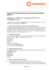 In Spanish: AVISO DE PRIVACIDAD DE LA APLICACIÓN LEDVANCE SMART+ v1.0